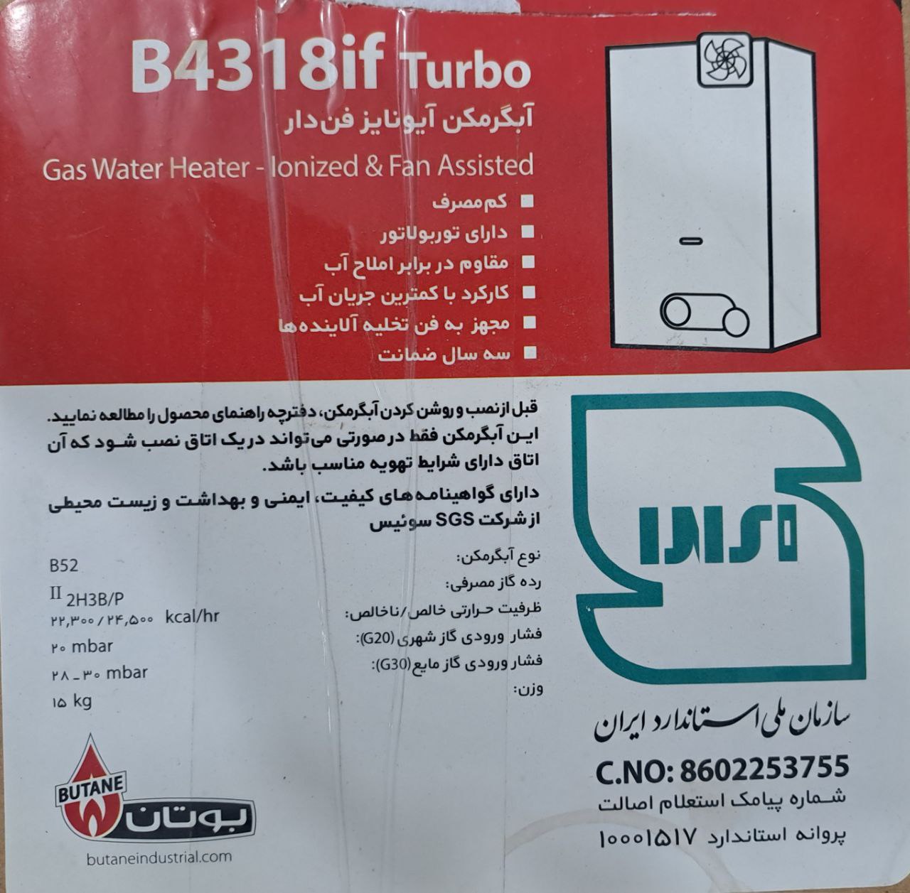 ظرفیت حرارتی: ۲۴٬۵۰۰ کیلوکالری بر ساعت